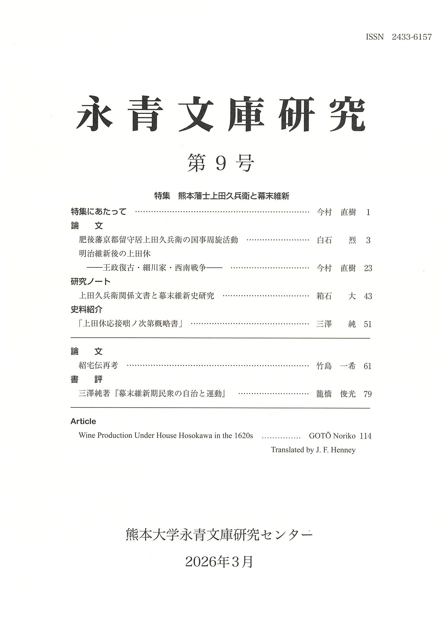 研究紀要「永青文庫研究」 創刊号~第9号
